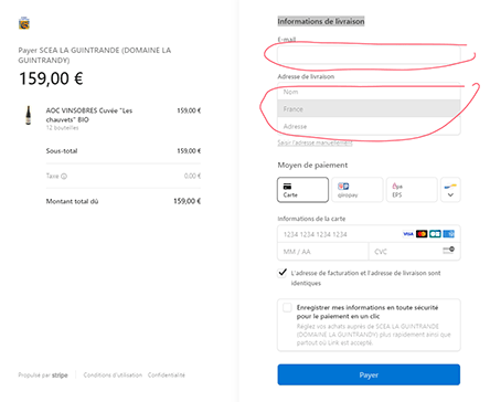 3/ Nous vous remercions d'écrire votre e-mail ainsi que l'adresse de livraison.